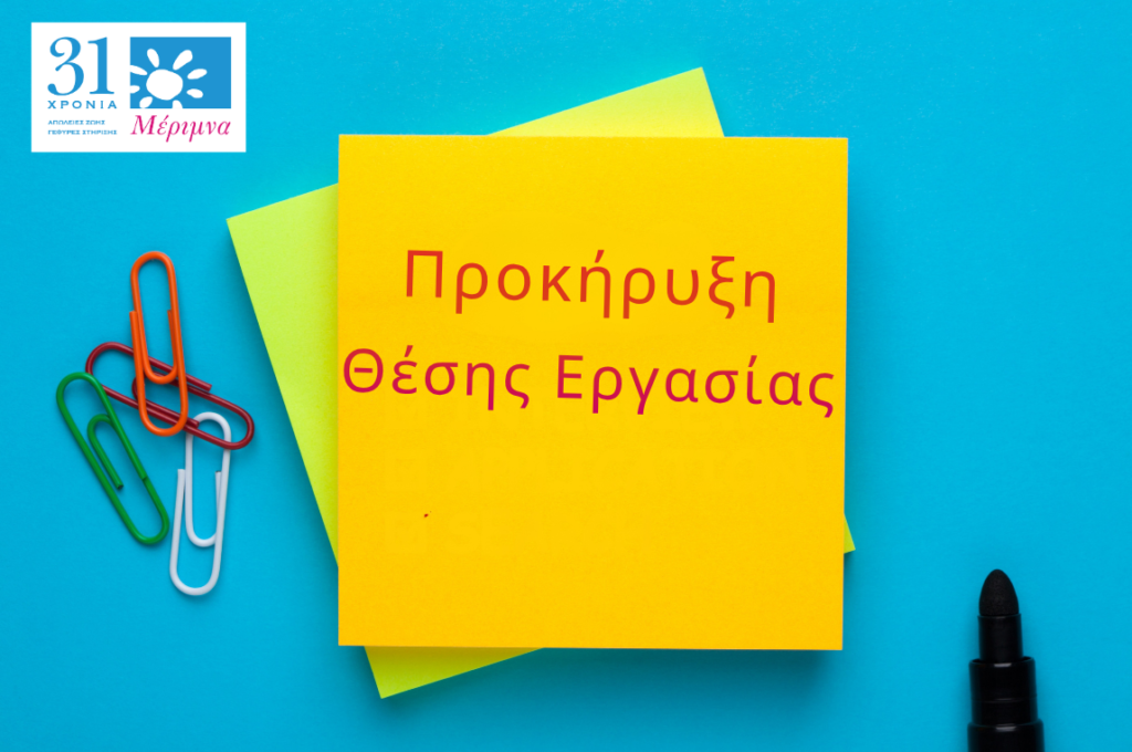 Η Μέριμνα – Αστική Μη Κερδοσκοπική Εταιρεία για τη Φροντίδα Παιδιών και Οικογενειών στην Αρρώστια και το Θάνατο αναζητά άτομο για Γραμματεία Διοίκησης πλήρους απασχόλησης για να ενισχύσει την ομάδα της.